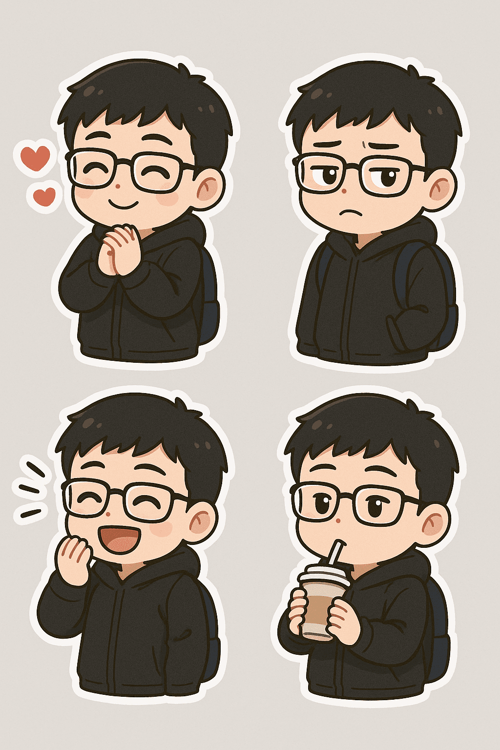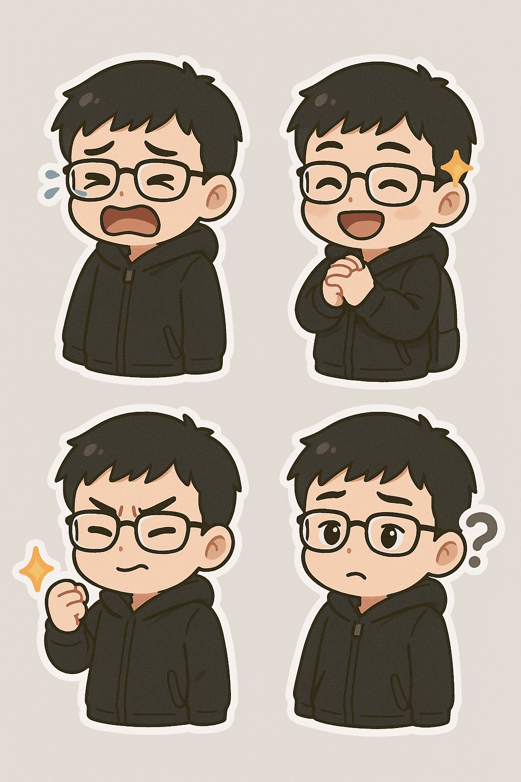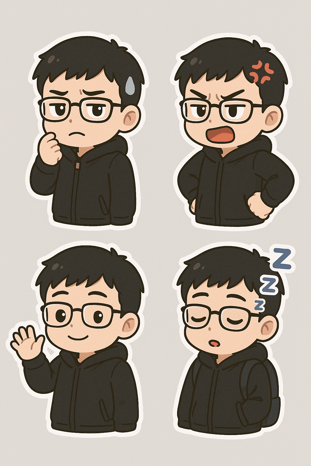 提示词:Turn me into a chibi sticker set, every sticker should not cover the other stickers.